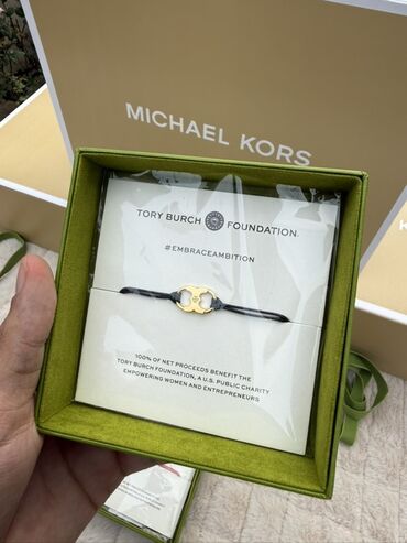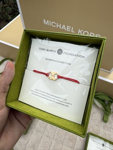 - Dizayn: Nazik ipli qolbaq, mərkəzdə qızılı rəngdə metal emblem (Tory Burch loqotipi formalı).