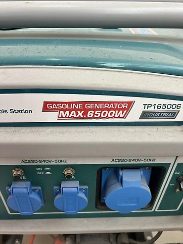 Geniş çən, sabit 220–240V çıxış və rahat daşınma üçün təkər sistemi ilə ev, ofis, tikinti və bağ sahələri üçün uyğun güclü benzin generatoru. Model üzərində “Gasoline Generator MAX.6500W” və “TOTAL One-Stop Tools Station” işarələri mövcuddur.
