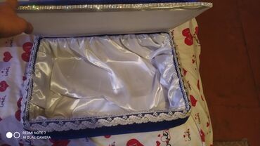 - Qutu: Qapaqlı, kənarları dantellə işlənmiş. Qapağın iç hissəsi parıltılı bəzəklə haşiyələnib. Daxili astar ağ atlas/parıltılı saten parçadandır. Gəlin aksesuarları, zinyət əşyaları, nişan dəsti və digər xırda hədiyyələrin saxlanması və təqdimatı üçün idealdır.