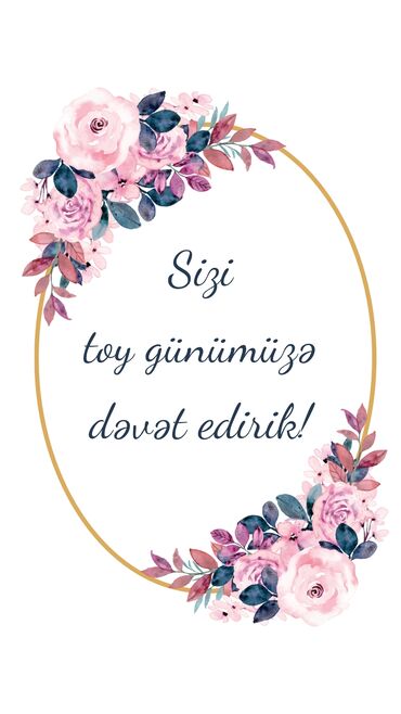 - Pastel çəhrayı və qızılı tonlarda, akvarel güllərlə bəzədilmiş minimalist dizayn.