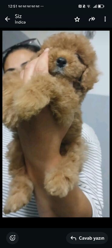 Pulda razılaşmak olar tecili satılır heddiyeleride vardır Cins: Miniatür/oyuncaq növündə pudel tipli balaca it Rəng: Açıq krem (şampan) Xüsusiyyətlər: - Yumuşaq, sıx qıvırcıq tük örtüyü, tökülməs...