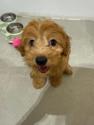 Maltipoo balası – mini ölçülü, krem/qızılı rəngli, qıvırcıq tüklü Xüsusiyyətlər: - Cins: Maltipoo (Maltese x Poodle dizayner cinsi) - Rəng: açıq qızılı/krem - Ölçü: kiçik, ev və mənzil üçün çox uy...