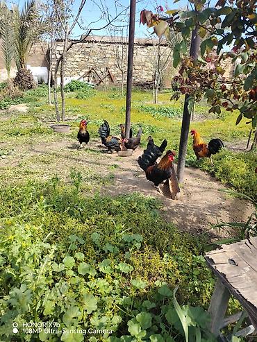 - Sürü tərkibi: fotolarda bir neçə xoruz və bir neçə dişi quş görünür; birlikdə saxlanması mümkündür.