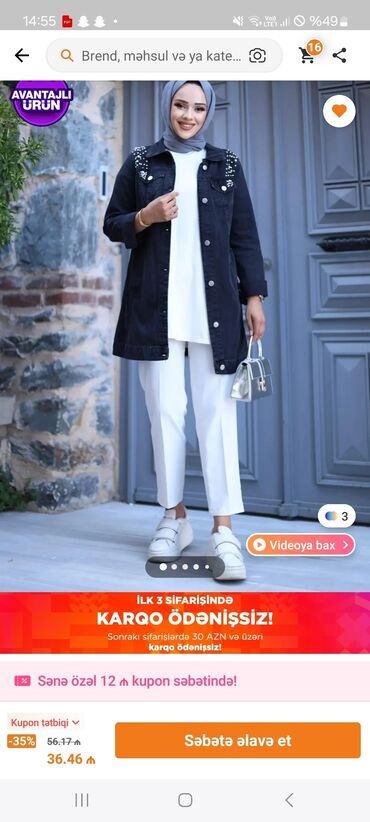 Trendyoldan vurulub kiçik çıxıb diye satıram 44 razmer,40 razmer var,30azn ancaq vhatsapda yazın