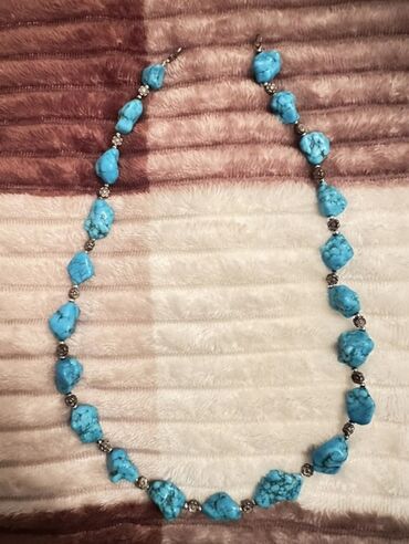- Dekorativ, təbii daş görünüşlü iri türkuaz parçalarla düzülmüş boyunbağı