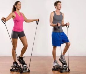 Это компактный домашний степпер, который сочетает в себе имитацию ходьбы по ступеням и вращательные движения.