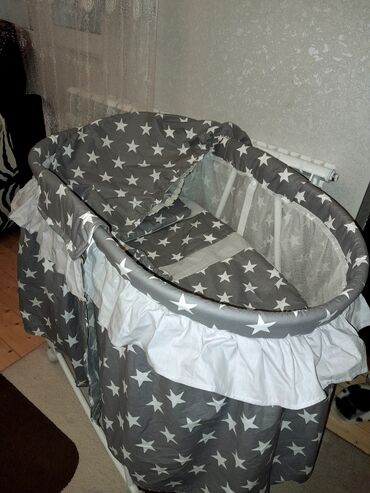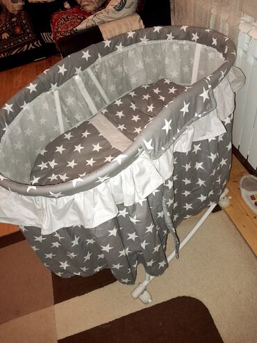 - Ölçü (təxmini, foto əsaslı): yenidoğulmuş və ilk aylar üçün uyğun oval beşik ölçüsü