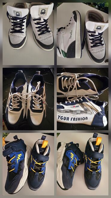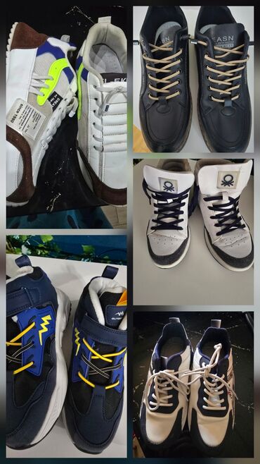 - Şəkillərdəki modellər müxtəlif brend yazıları və loqotiplərlədir (məs., Benetton üslublu yüksəkboğaz sneaker, OUTDOOR uşaq krossovkası, qalın dibli trekking bot və s.).