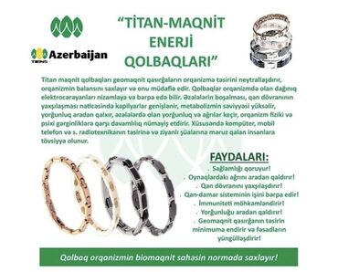 Tiens Azerbaijan “Titan-Maqnit Enerji Qolbaqları” Məhsul təsviri: - Material: titan əsaslı maqnit elementli metal ərintisi - Dizayn: müxtəlif rəng və üslublu segmentli qolbaqlar (qızılı, gümüşü/qa...