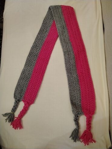 - Forma/ölçü: uzun və enli, boyuna rahat dolanır; uclarında hörük və saçaq bəzəkləri