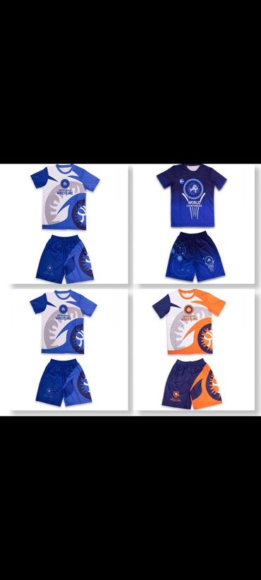 - Alternativ geyimlər: United World Wrestling temalı iki hissəli məşq dəstləri (futbolka + şort) mavi tonlarda və mavi–narıncı rəng kombinlərində, tematik qrafik çaplı.