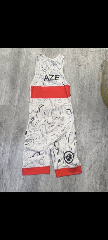 Güləş üçün yarış geyimləri (singlet) dəsti - 2 ədəd: qırmızı-ağ-qara və mavi-qara rənglərdə - Qırmızı modelin arxa hissəsində “AZE” yazısı - Mavi modeldə sinədə loqo və ağ zolaqlar - Elastik, bədə...