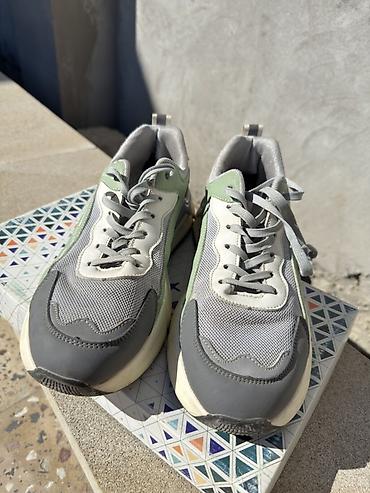Unisex idman krossovkaları - Rəng: boz, ağ və açıq yaşıl kombinasiya