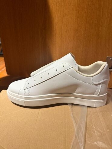 Ağ rəngli slip-on üslubunda idman ayaqqabısı.