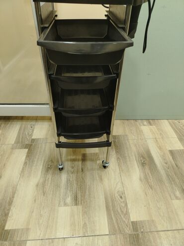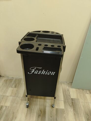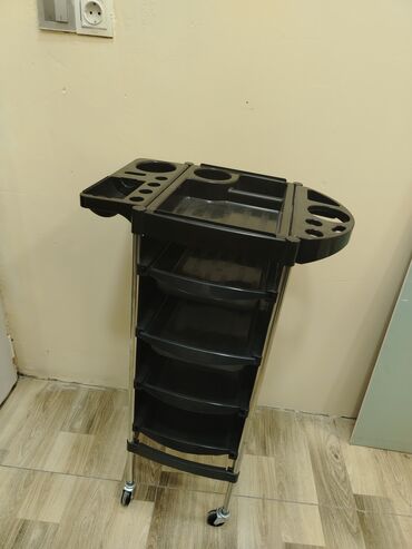 Salon üçün çoxfunksiyalı servis arabası - Rəng: qara - Material: möhkəm plastik və metal dayaqlar - Hərəkətlilik: 4 fırlanan təkər, 360° çevik hərəkət - Üst panel: fürsətli işləmə səthi və alətlər...