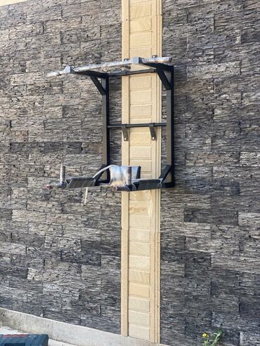 Divar üçün çoxfunksiyalı turnik-dip-lövhə komplekti - Metal konstruksiya, möhkəm qaynaq və bərkidici kronşteynlərlə divara sabitlənir - Üst hissədə müxtəlif enlərdə tutacaqlar: geniş, dar və neytr...
