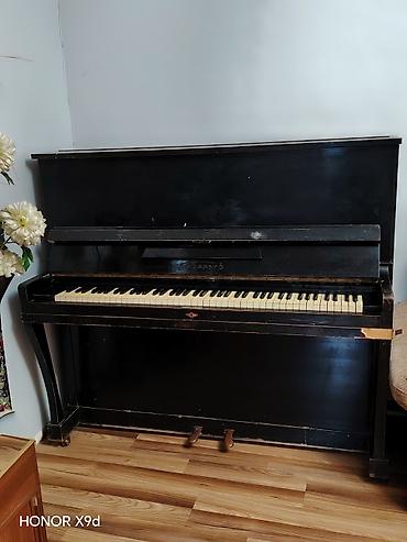 Upright pianino – klassik qara korpus, iki pedal, tam ölçülü klaviatura (88 düymə). Ön qapaq açılıb-bağlana bilir, klaviatura örtüyü mövcuddur. Korpusda sadə xətlər, düz üst panel və yan dayaqlar. Aşağı hissədə səs açılışı və pedallar üçün standart konstruksiya. Ev şəraitində saxlanılıb, interyerə uyğun minimalist görünüşlüdür. Musiqi təhsili alanlar və məşq üçün praktik seçimdir; akustik səs, mexaniki klaviatura hissiyyatı və pedallar vasitəsilə ifadəlilik imkanı təqdim edir.Qiymətdə endirim olacaq.