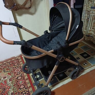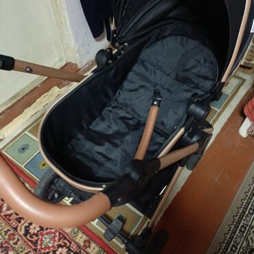 Uşaq arabası – Belecoo markası - Tip: transformasiya olunan beşik-tipli körpə arabası (lyulka modulu) - Rəng: tünd qəhvəyi/şampan tonları, qızılı çərçivə - Çərçivə: möhkəm alüminium konstruksiya -...