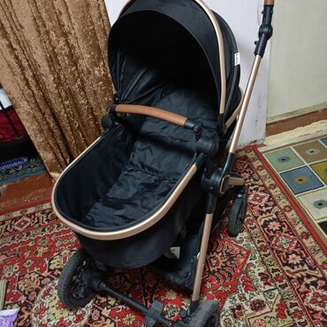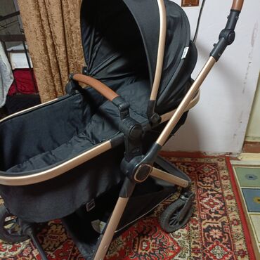Uşaq arabası – bej/qızılı tonlarda, dörd təkərli, böyük səbətli və tam komplekt. Xüsusiyyətlər: - Daşıma beşiyi tipli lyulka: yumşaq, quilted matrasa malik, iç hissəsi ağ rəngdə, fermuarlı yan his...