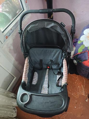 Uşaq arabası – klassik beşik tipli, qara rəngli quilted (romb tikişli) parça ilə. Qızılı/alüminium rəngli möhkəm metal şassi, tək hərəkətlə qatlanan konstruksiya. GÜT SATILIR 120 MANAT O BİRİ KARE...