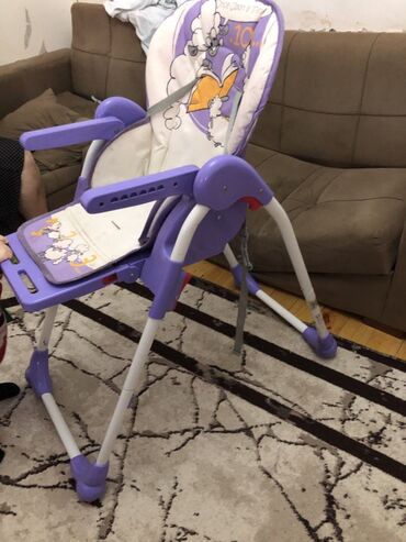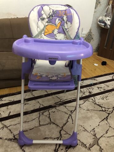 - Uşaq yemək stulu: SHENMAA brendi. Çıxarılan böyük süfrə/tray, bel kəməri ilə təhlükəsizlik, ayaq dayaq platforması. Yumşaq oturacaq və arxalıq üzərində qoyun rəsmləri. Çərçivə metal boru konstruksiyalı, dayanıqlı ayaqlarla.