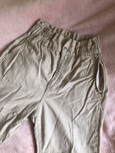 Uşaq şalvarı – Defacto - Rəng: bej - Model: jogger tipli, elastik beli və iplə tənzimləmə - Ölçü: 8-9 yaş (128-134 sm) - Material: sıx toxumalı pambıq qarışığı (etiketdə Defacto) - Dizayn: yanaqda...