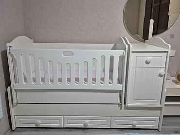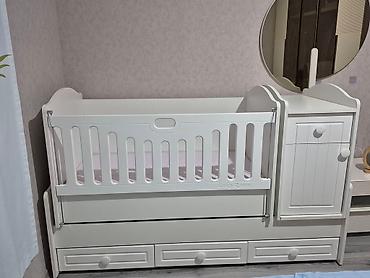 Ağ rəngdə çoxfunksiyalı uşaq beşik-komod dəsti.
