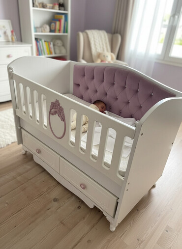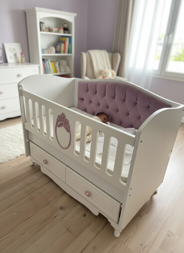 Körpələr üçün rahat və təhlükəsiz yatacaq zonası, alt çekmecələr isə geyim və aksesuarların səliqəli saxlanması üçün əlverişlidir. Romantik klassik üslubda uşaq otaqlarına uyğun.