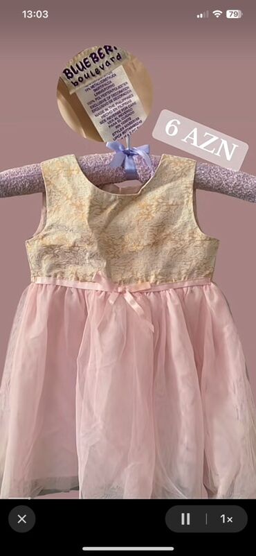 Uşaq üçün zərif ziyafət/libas paltarı.1dəfə ad günündə geyinilib 100manata alınıb gənclik malldan - Rəng: krem/ağ - Üst hissə: zərif krujeva naxışlı, dairəvi boğaz, qolsuz - Bel xətti: incə mirvar...