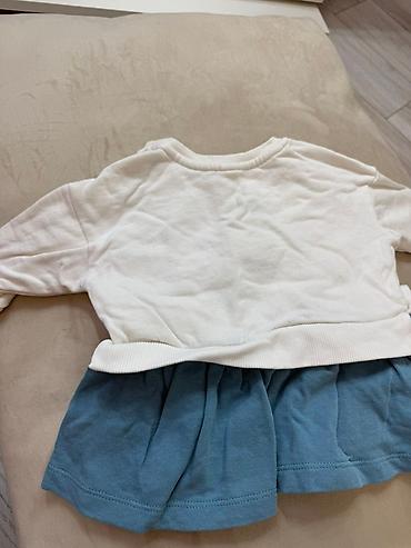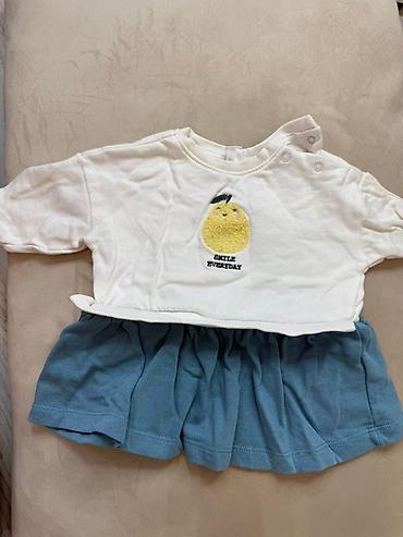 Körpə qızlar üçün Chicco markasına aid uzunqol don. Ağ rəngli üst hissəsi bənövşəyi yaxalığa malikdir və üzərində dovşan təsvirləri ilə bəzədilmişdir. Çəhrayı rəngli ətək hissəsi xırda naxışlarla t...