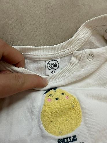 Ağ rəngdə üst hissəsi və mavi rəngdə ətəyi olan uşaq donu. Donun üzərində sarı rəngli, sevimli bir meyvə fiquru var və altında "SMILE EVERYDAY" (Hər gün gül) yazısı yer alır. Uzunqollu dizaynı sayəsində sərin havalarda rahatlıq təmin edir. Donun yaxa hissəsində düymələr mövcuddur ki, bu da geyindirməyi asanlaşdırır. Bu don uşaqlar üçün gündəlik istifadə, oyun vaxtı və ya xüsusi tədbirlər üçün uyğundur.