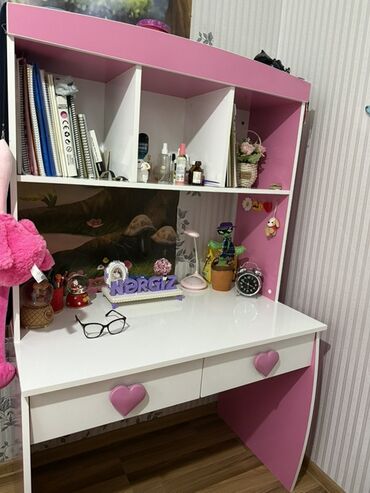 Uşaq/yeniyetmə otağı üçün yazı və dərs masası – üst kitablıqla.