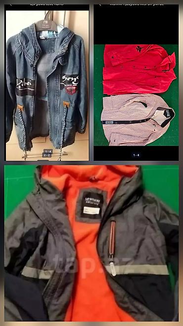 Uşaq geyim dəstləri - 4 yaş üçün dəst – 15 m: 3 ədəd kapüşonlu sviter/svitşört (qara “GREAT”, yaşıl, tünd qırmızı “LIKEAB”), 1 ədəd bej uzunqollu köynək (SPORACTIVE, 73 çaplı). - 4,5 yaş üçün dəs...