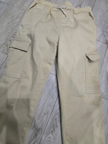 - Bej rəngli kargo şalvar – yanlarda cibi, bel hissəsi rezinli və iplə tənzimlənən.