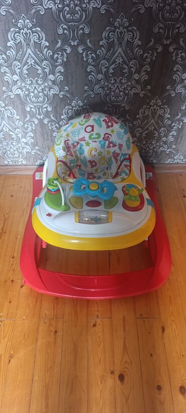 - Rənglər: qırmızı baza, sarı-ağ korpus, rəngli ön panel və əlifba naxışlı oturacaq