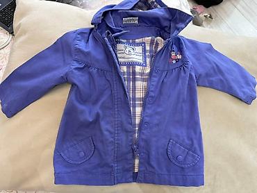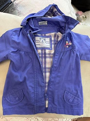 Bənövşəyi rəngdə, astarlı, kapüşonlu uşaq kurtkası. Kurtka fermuarla bağlanır. Həmçinin, kurtkanın ön tərəfində iki ədəd düyməli cib var. İç astarı damalı naxışlı parçadan hazırlanıb.