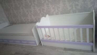 - 1 ədəd tək nəfərlik çarpayı: ağ-bənövşəyi rəngdə, yanları qapalı qoruyucu panellə. Alt hissədə 3 geniş çekmece yerləşir – paltar, oyuncaqlar və məişət xırda əşyaları üçün rahat saxlama imkanı.