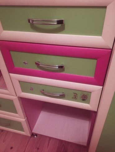 - Ümumi xüsusiyyətlər: çoxsaylı çekmecə və rəflər, səliqəli saxlama üçün rahat bölmələr, güzgü, yığcam dizayn; qız uşaqları üçün uyğun şən rəng palitrası.