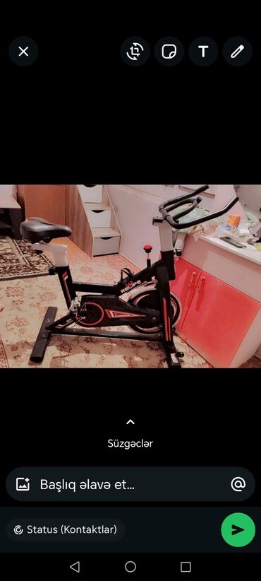 - Daxili velotrenajor: RELIFE markalı, evdə kardio məşqləri üçün. Tənzimlənən oturacaq hündürlüyü, ön tərəfdə çox tutacaqlı sükan, kəmər ötürücülü uçan təkər sistemi, pedallarda təhlükəsizlik kəmərləri. Stabil metal çərçivə, ev istifadəsi üçün səssiz işləmə konsepsiyası.