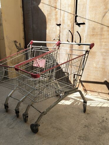 Mağaza/supermarket üçün alış-veriş səbətləri və arabaları - Material: möhkəm plastik karkas, metal elementlərlə gücləndirilmiş torvari yan panellər - Rəng: qara-yaşıl - Təkərlər: 360° fırlanan, sə...