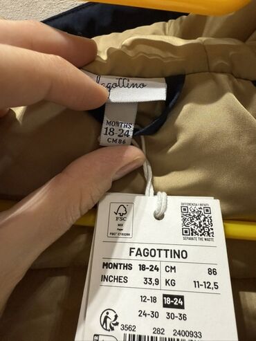 Tamamilə yeni Fagottino uşaq kurtkasını satıram. Heç geyinilməyib — yalnız ölçü üçün geyindirilib. 18–24 ay yaşa və 86 sm boya uyğundur.