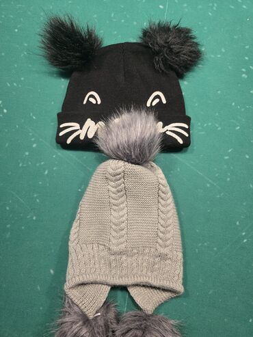 LC Waikiki qız uşağı üçün papaq - Ölçü: 10–18 yaş üçün uyğundur (etiketdəki məlumat əsasında). - Rəng: Qara. - Dizayn: İki ədəd tüklü pompon, ön hissədə “meow” yazısı və şirin üz elementləri. - Ma...