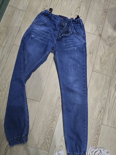- 2 ədəd mavi cins şalvar (eyni modeldən): klassik beş cib, düymə və fermuar qapanma, bel hissəsində tənzimlənən rezin-liyatl işarələri (daxildən bərkidici rezin), aşağı hissə rezinli manjet, yüngül “washed” effektli dizayn.
