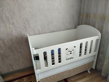 Dəst: beşik korpusu, qoruyucu rels, alt çekmecələr. (Şəkillərdə döşək və yataq dəsti göstərilib.)