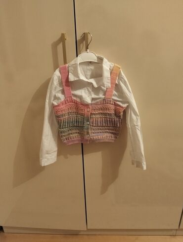 Uşaq üçün trikotaj jilet - Rəng: açıq çəhrayı əsas, üzərində narıncı