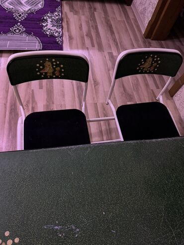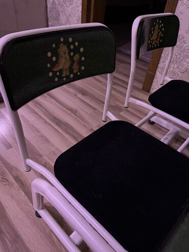 - Oturacaqlar: yumşaq süngərli oturacaq hissəsi, bel dayaqlarında uşaq fiqurları ilə dekor