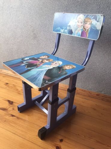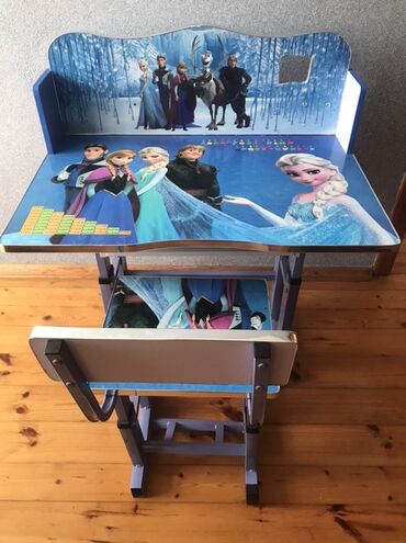 - Dizayn: masa səthində, arxa paneldə və stulda “Frozen” qəhrəmanları ilə rəngli çap