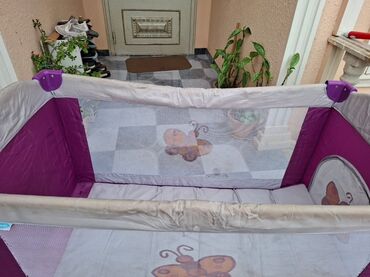 Yalniz wp aktivdir.Bənövşəyi-qrifon rəng kombinasiyasında uşaq oyun-körpə beşiyi (portativ playpen). Xüsusiyyətlər: - Şəbəkəli yan divarlar – hava dövranı və içərini asan görmək üçün - Ortada kə...