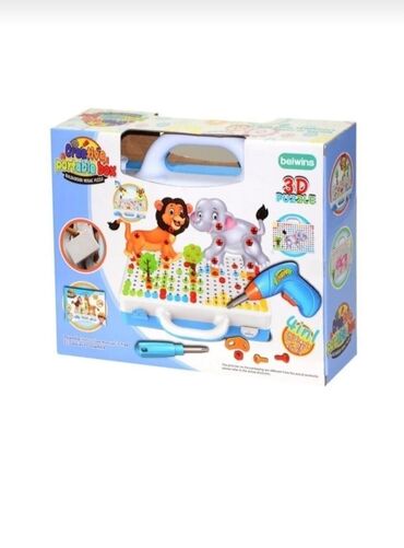 - 4‑ü‑1 yaradıcı qurma dəsti: delikli lövhə üzərində rəngli vintlər, plitələr və detallarla 2D/3D fiqurlar yığmaq olur (gəmi, çiçək və s.).