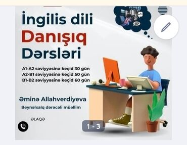 İngilis dili hazırlığı - Qiymət: 20 manat - Dərslər: həftədə iki dəfə - Sınaq dərsi: pulsuz - Proqram: qrammatika biliklərinin gücləndirilməsi və ingiliscə danışığın inkişafı - Hədəf qrupu: yalnız...